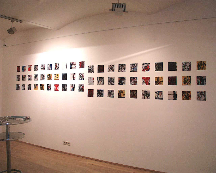 Mixed Media auf PVC-Folie – je 15x15cm – 1999